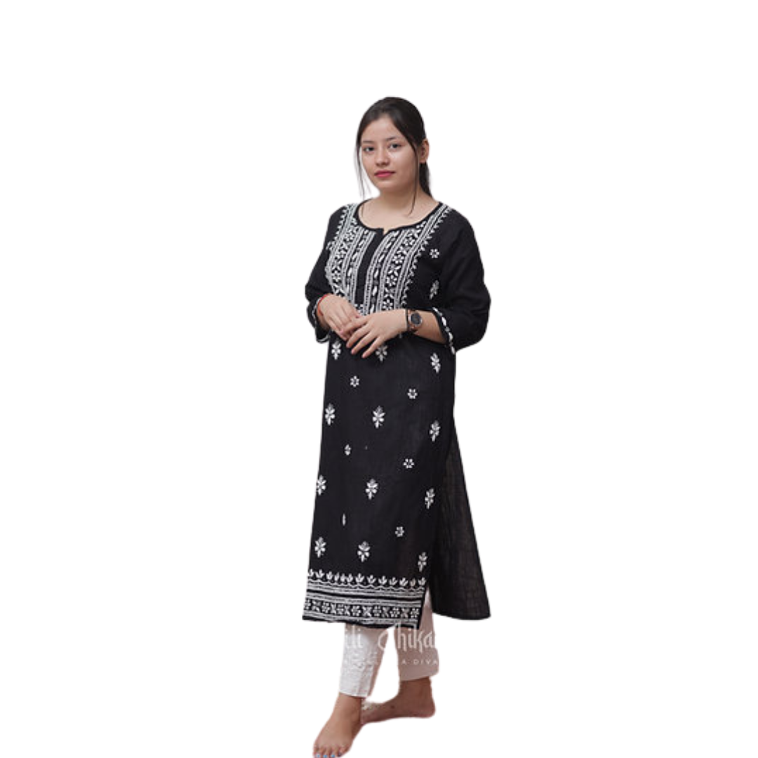 100% handstitched pure Lucknow based Chikankari for a timeless and elegant look. It's made with a blend of traditional and modern designs, making it perfect for any occasion. Lucknow Chikankari Kurti by Nakhrili Chikankari.