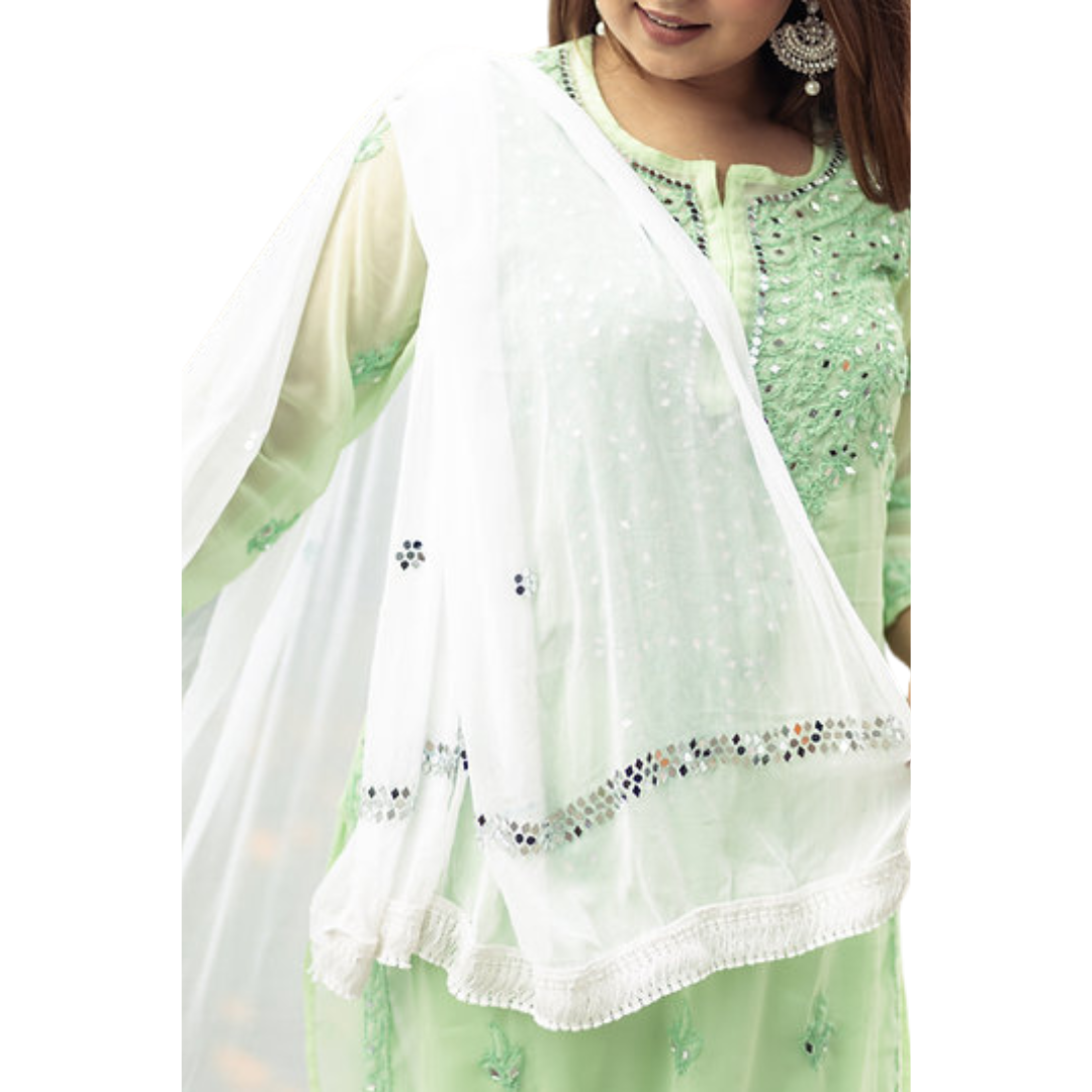 Chikankari Dupatta with Mirror Work