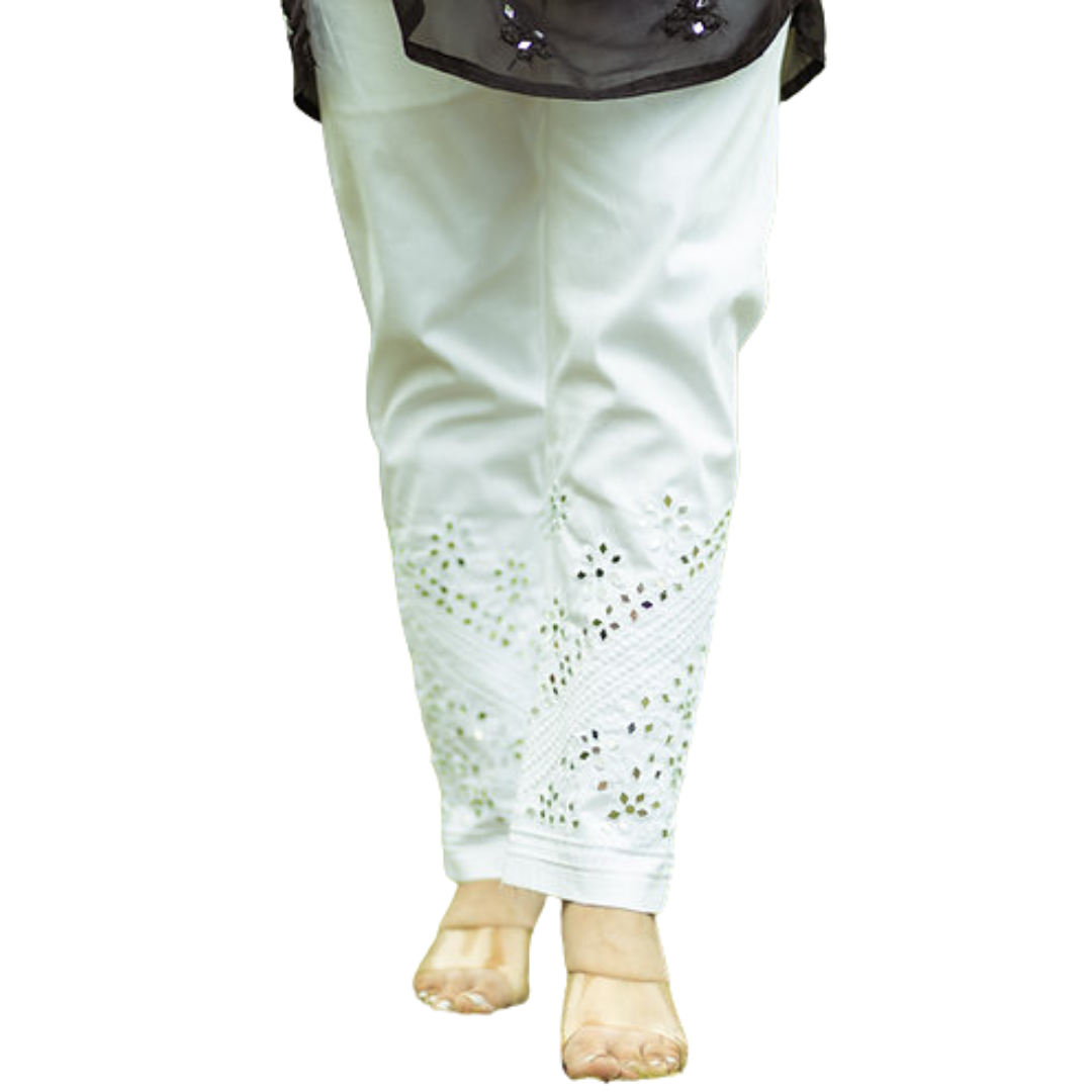 Introducing our stunning Pant Mirror Work! Elevate your fashion game with these exquisitely crafted pants featuring intricate mirror work detailing. Made from high-quality fabric, these pants are not only stylish but also comfortable to wear all day long. Whether you're dressing up for a night out or looking to add a touch of glamour to your everyday wardrobe, these pants are the perfect choice. The mirror work adds a touch of sparkle and shine, making these pants a versatile and eye-catching addition to any woman's wardrobe. Pair them with a simple top and heels for a bold and chic look, or dress them down with a casual t-shirt and sneakers for a laid-back yet stylish ensemble.