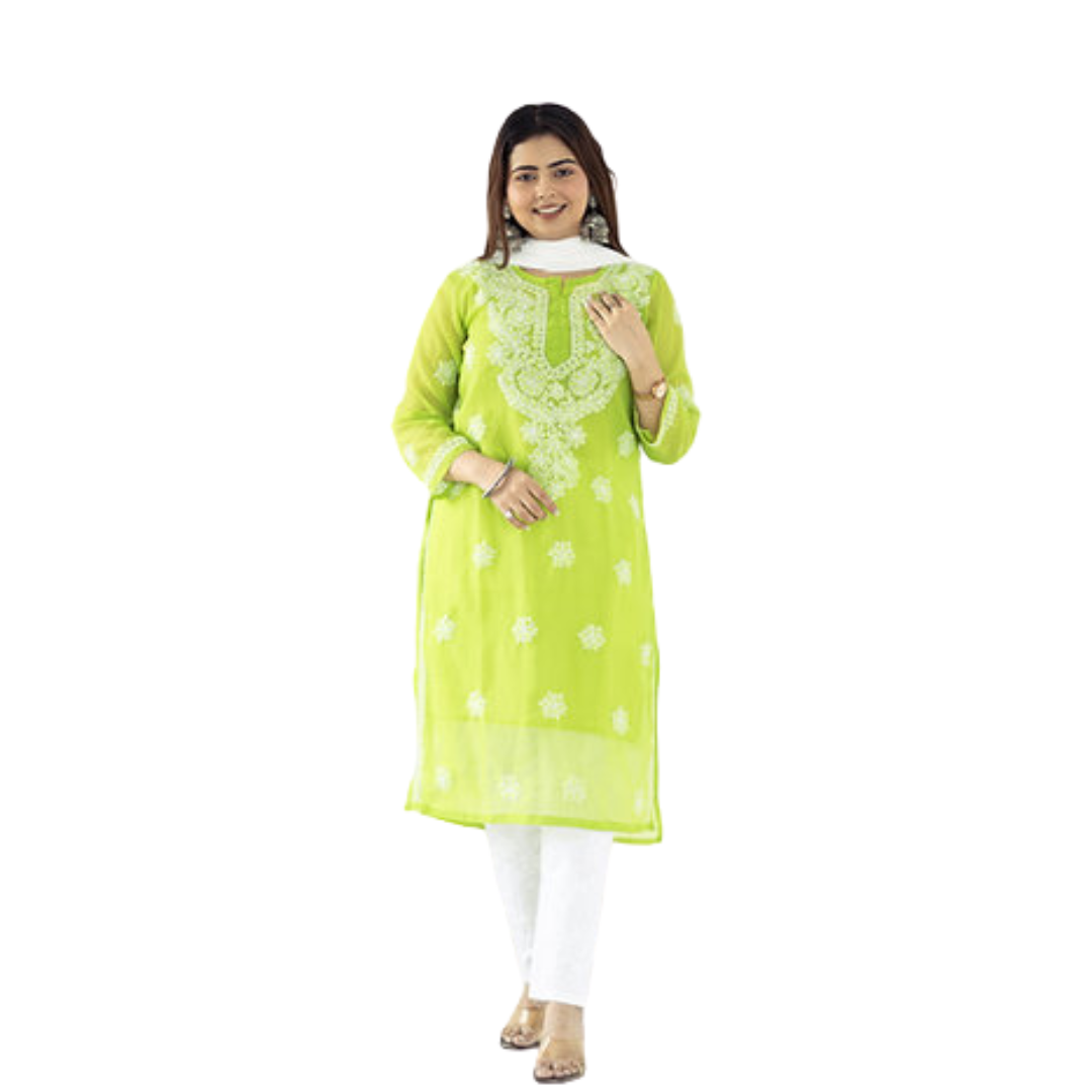 Introducing the elegant Daanya Chikankari Kurti, a timeless addition to your wardrobe. Crafted from the finest cotton fabric and hand-embroidered with intricate Chikankari work, this kurti exudes traditional charm and sophistication. The classic neckline and delicate detailing make it a versatile piece that can be dressed up for special occasions or worn casually for a touch of effortless style. Available in a range of captivating colors, this kurti is designed to flatter every body type and ensure all-day comfort. Elevate your ethnic wear collection with the exquisite Daanya Chikankari Kurti and make a statement wherever you go.